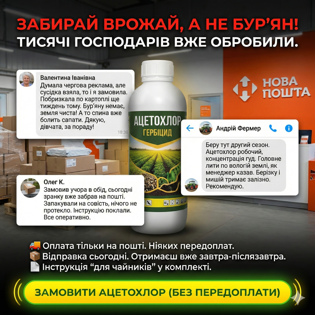 3. Економія часу: 1 година роботи замість 2 тижнів сапання.