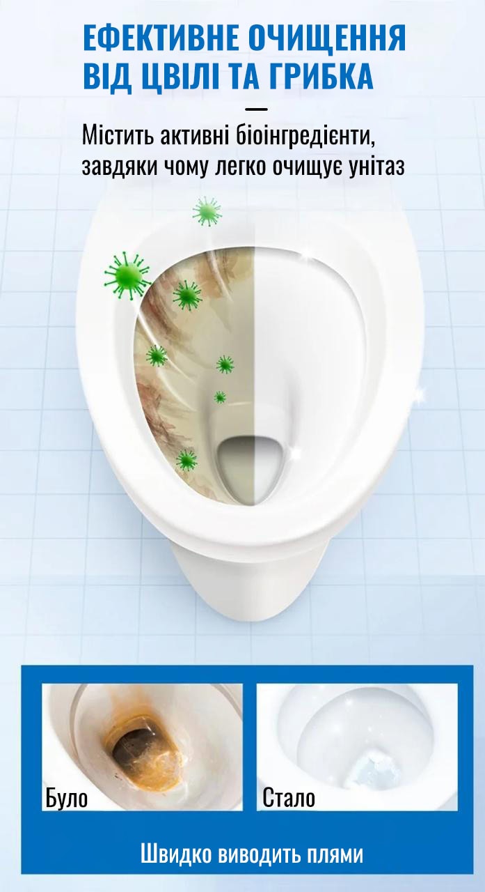 CleanMit WC-Tabs — це високоефективні таблетки для чищення унітазу з потрійною силою дії. Вони спеціально розроблені для глибокого очищення навіть у тих місцях, куди не дістає звичайна щітка. Таблетки швидко та ефективно видаляють забруднення, кам’яний наліт, сечовий камінь і неприємні запахи, залишаючи унітаз бездоганно чистим і свіжим.
