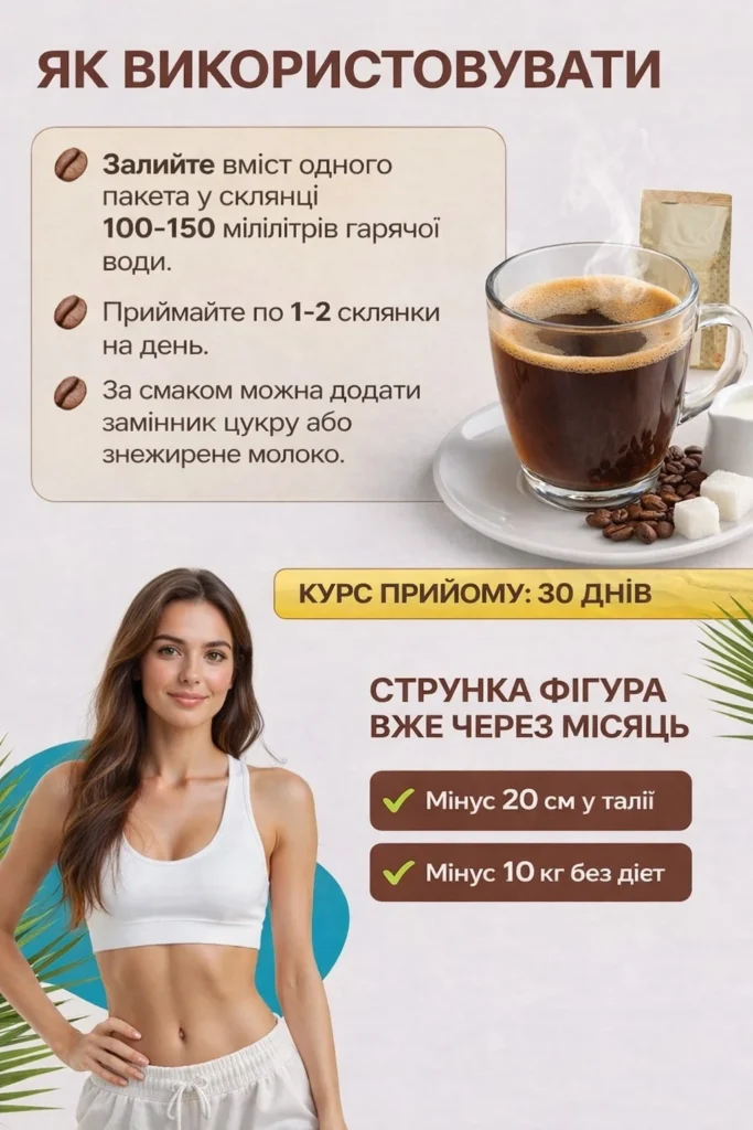 У складі поєднання компонентів, які м’яко доповнюють щоденний раціон і роблять звичну чашку кави більш функціональною.