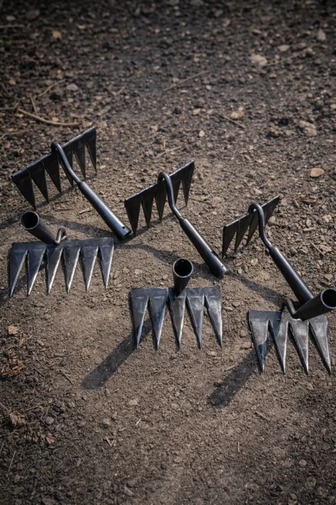 Підходять для видалення бур’янів, скарифікації газону, підготовки клумби для посіву, розбиття грудок сухої землі та легкого розпушування ґрунту.