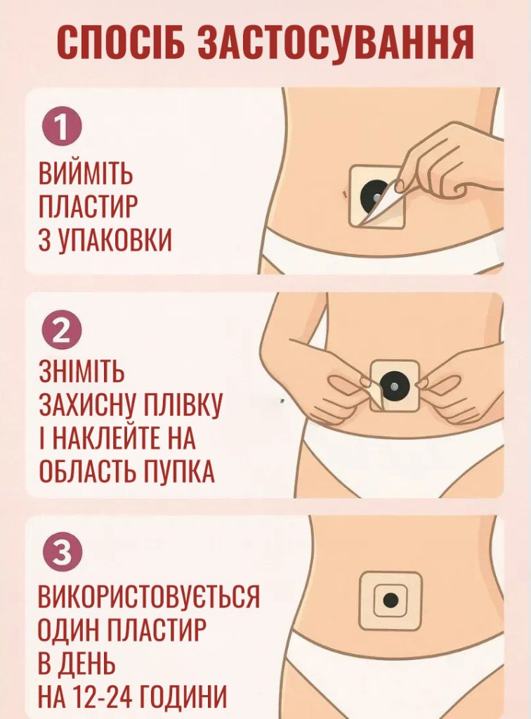 Достатньо наклеїти пластир на проблемну зону і він починає працювати протягом 12 годин, поки ви займаєтесь своїми справами чи навіть спите.