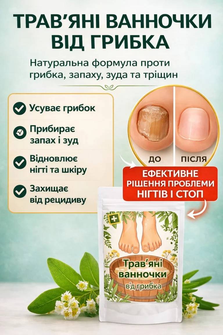 Уявіть, що проблема грибка більше не змушує вас ховати ноги, соромитися відкритого взуття чи терпіти постійний свербіж. Трав’яні ванночки від грибка — це натуральний догляд на основі рослинних компонентів, який допомагає покращити стан нігтів і шкіри стоп.